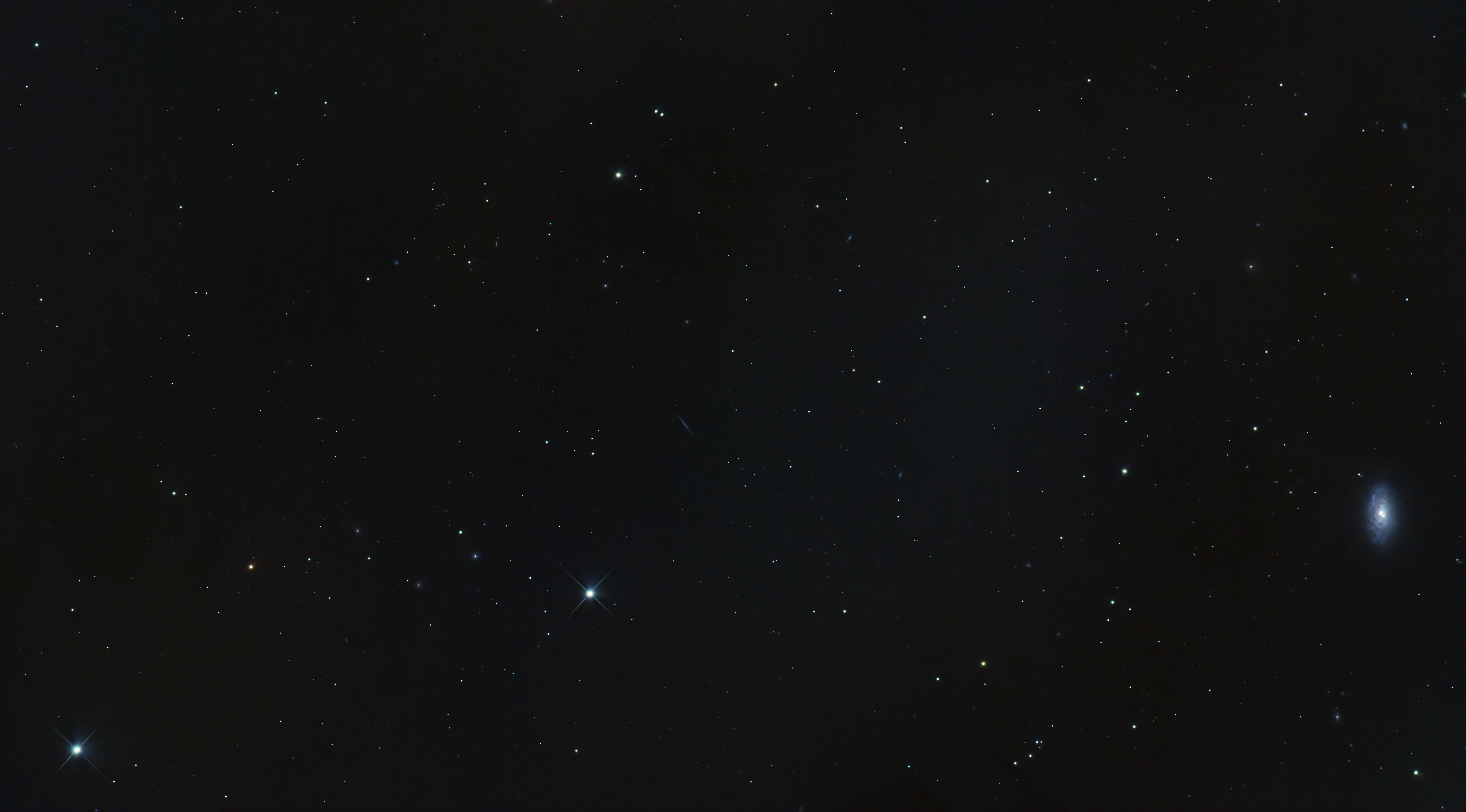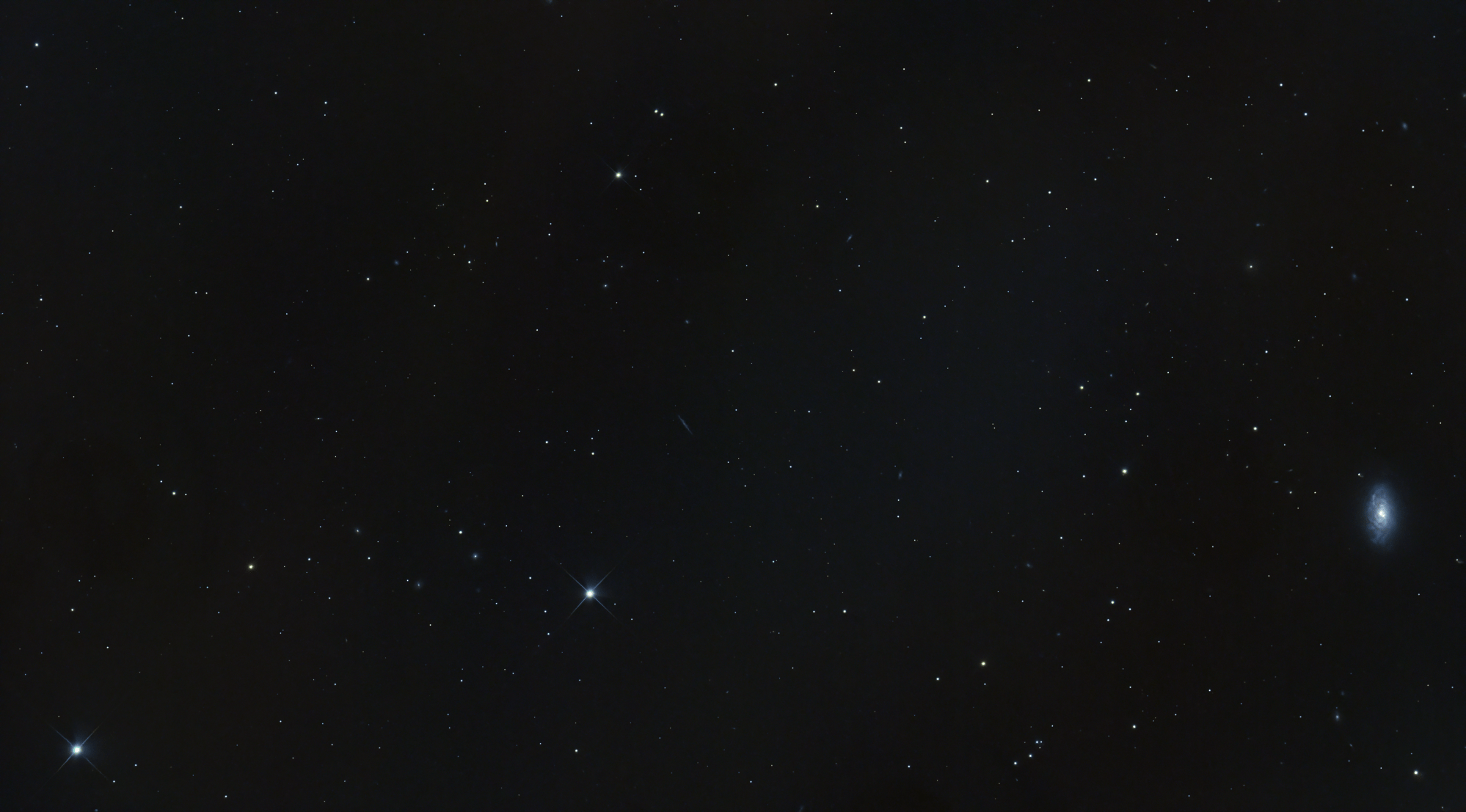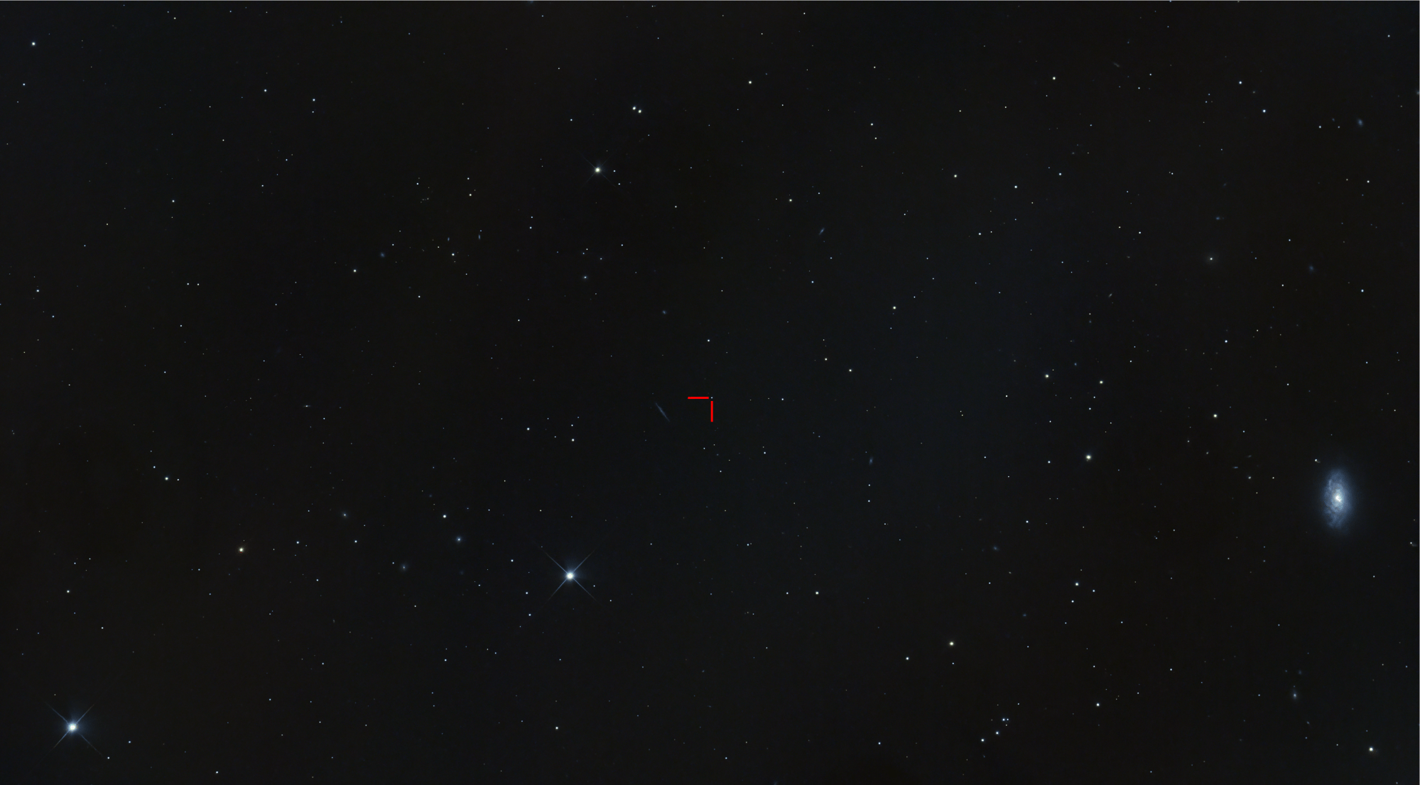 This image shows the giant elliptical galaxy Messier 87, located about 55 million light-years away in the Virgo Cluster. At the heart of M87 lies a supermassive black hole, one of the most massive known, which powers a spectacular relativistic jet — visible here as a faint blue streak emerging from the galactic core (highlighted by the red arrow).